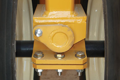 Heavy Duty Front Frame Construction and Replaceable Hardened Greaseable Main Pivot Pins and Bushings for Easy Access and Scheduled Maintance